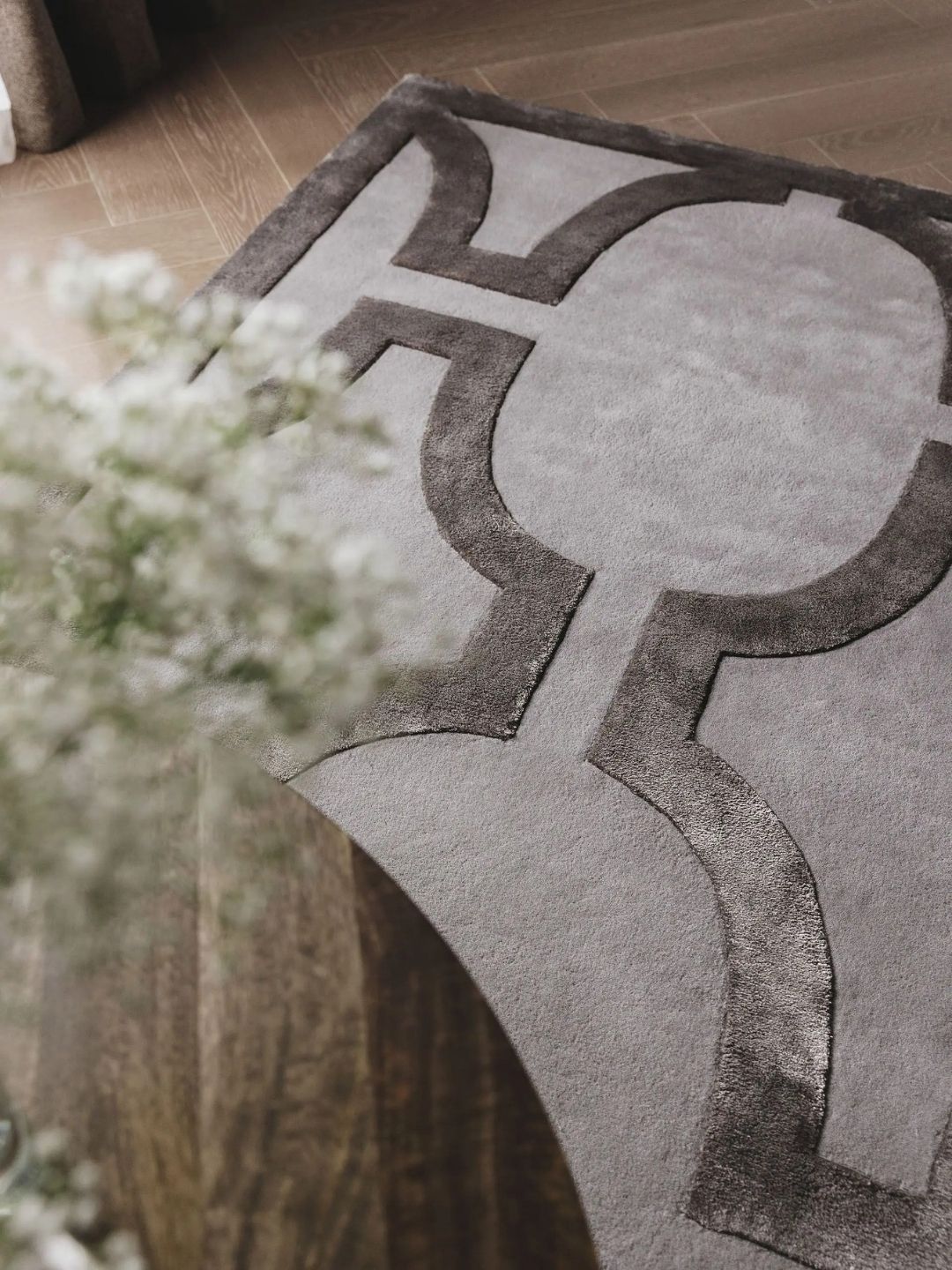 Cream wool rug living room design